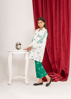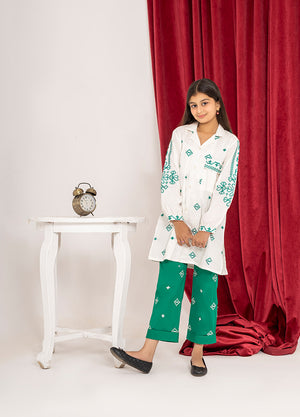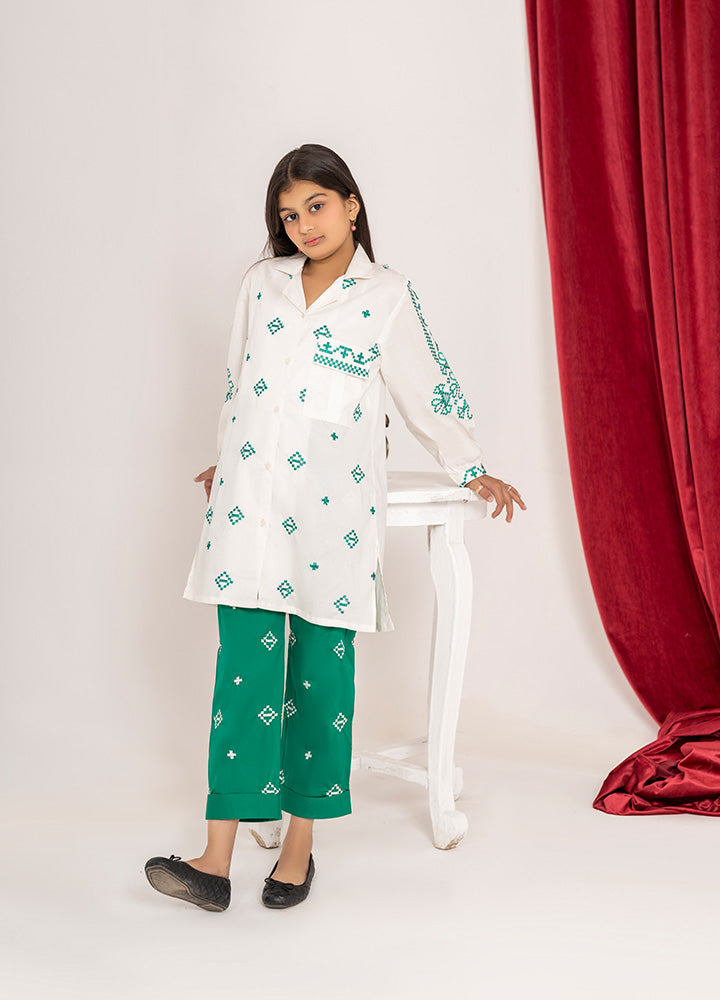 Embrace modern style with this fabulous two-piece western ensemble! Featuring a crisp white embroidered shirt paired with eye-catching dyed and embroidered trousers, this set brings contemporary flair to your wardrobe. Crafted from 100% cotton for ultimate comfort and breathability, it's perfect for casual outings, work days, or relaxed gatherings.