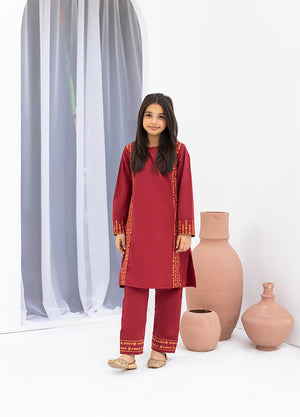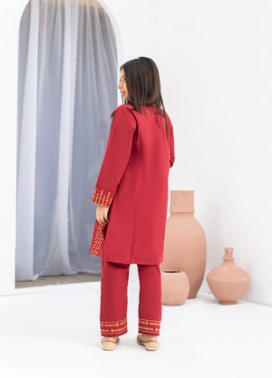Elegance with this distinguished 2-piece collection in deep maroon. Crafted entirely from premium 100% cotton, both the kurti and trouser showcase expertly dyed fabric that delivers rich, enduring color. Delicate embroidery embellishes each piece, weaving together traditional artistry with refined aesthetics. The natural breathability of cotton ensures graceful comfort, while the embroidered accents introduce subtle sophistication and visual intrigue.