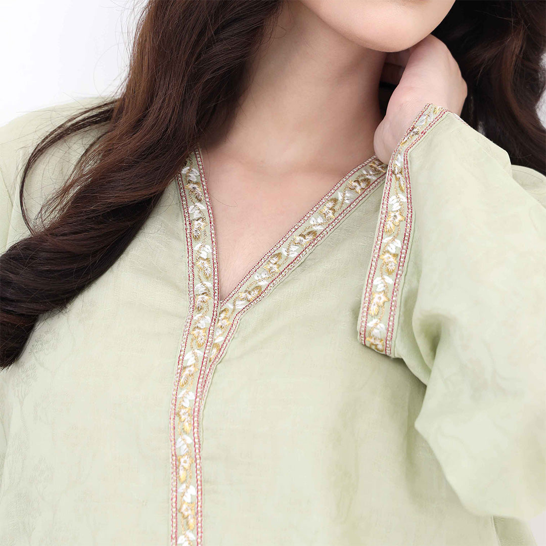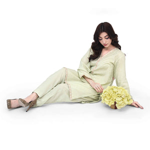 A sophisticated and breathable 2-piece set with intricate embroidery, perfect for a graceful and stylish look.