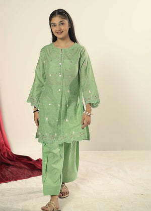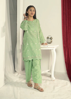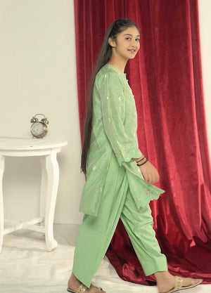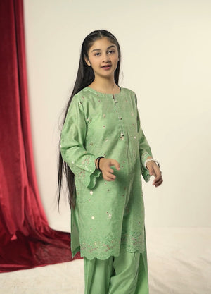 Radiate elegance with this luxurious two-piece stitched set! The intricately patterned yarn-dyed jacquard shirt, adorned with delicate embroidery, pairs beautifully with sumptuous raw silk shalwar for a sophisticated ensemble. This combination of textures creates a refined look that's both comfortable and utterly captivating.